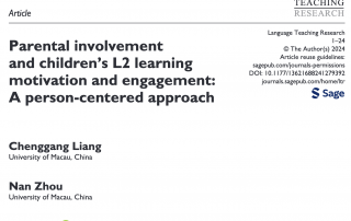 Liang, C., Zhou, N., & Yu, S.* (2024). Parental involvement and children’s L2 learning motivation and engagement: A person-centered approach. Language Teaching Research, 13621688241279392. GalleryLiang, C., Zhou, N., & Yu, S.* (2024). Parental involvement and children’s L2 learning motivation and engagement: A person-centered approach. Language Teaching Research, 13621688241279392.